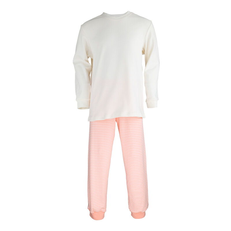 Velmi pohodlné dětské dlouhé pyžamo vyrobené z velmi příjemného bavlněného úpletu. Navlíkací guma v pasové části. Bavlněné lemy na rukávech a nohavicích.