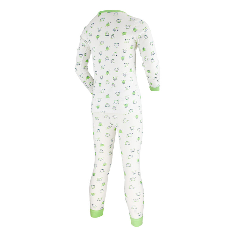Velmi pohodlné dětské dlouhé pyžamo vyrobené z velmi příjemného bavlněného úpletu. Navlíkací guma v pasové části. Bavlněné lemy na rukávech a nohavicích.