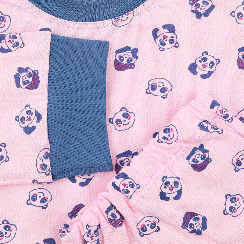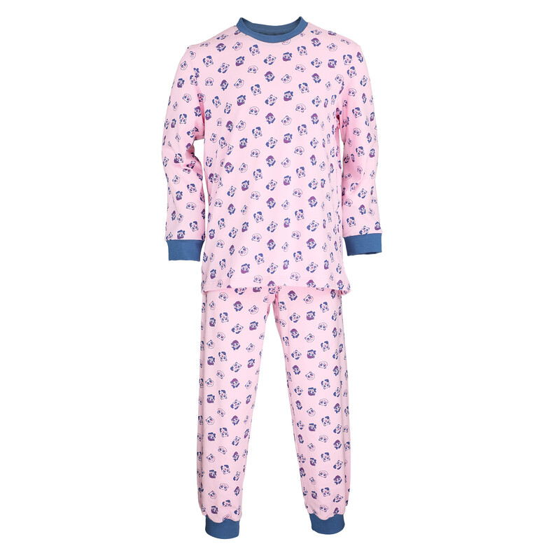 Velmi pohodlné dětské dlouhé pyžamo vyrobené z velmi příjemného bavlněného úpletu. Navlíkací guma v pasové části. Bavlněné lemy na rukávech a nohavicích.