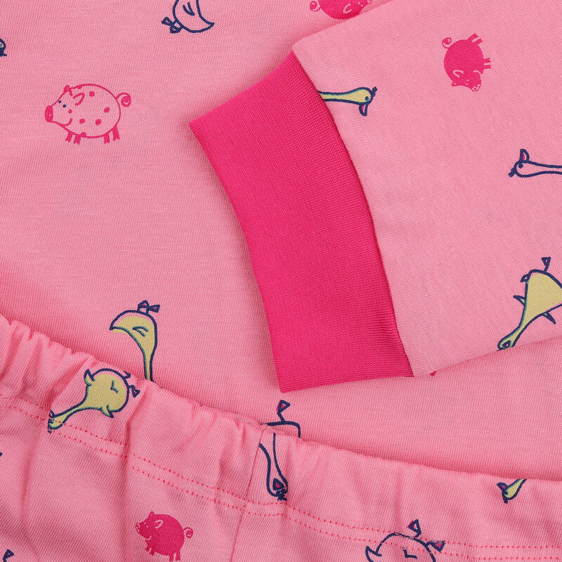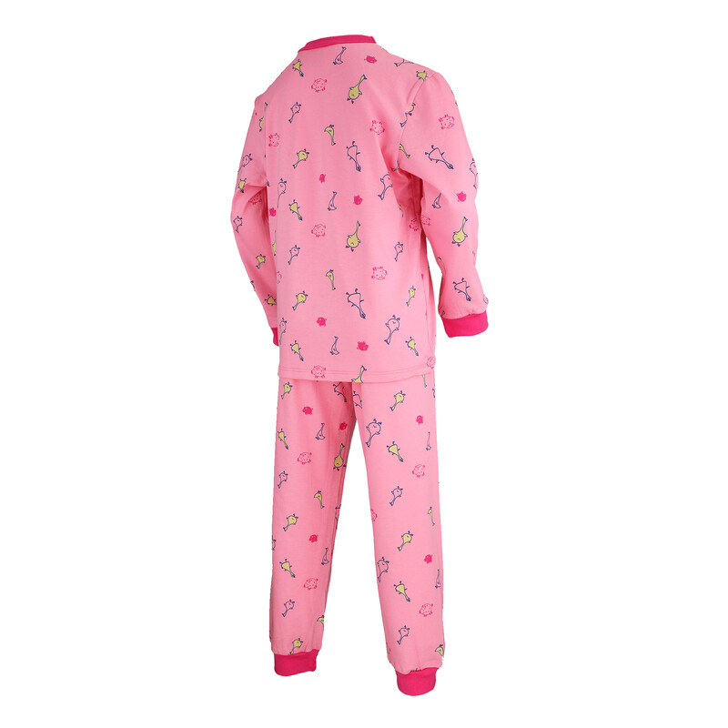 Velmi pohodlné dětské dlouhé pyžamo vyrobené z velmi příjemného bavlněného úpletu. Navlíkací guma v pasové části. Bavlněné lemy na rukávech a nohavicích.