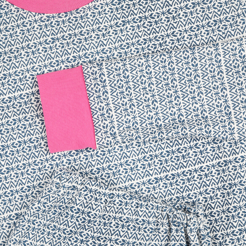 Pohodlné dívčí pyžamo s dlouhým rukávem s náplety a kulatým výstřihem. Kalhoty v pase na gumu /navlíkací/ a náplety na nohavicích. Prostě sladké růžové sny.