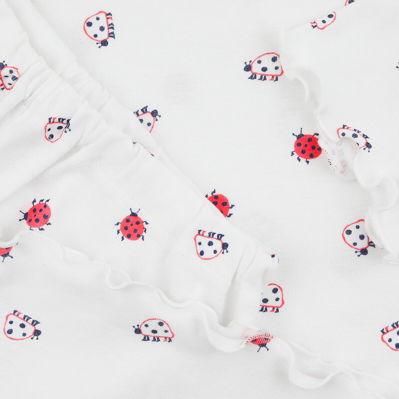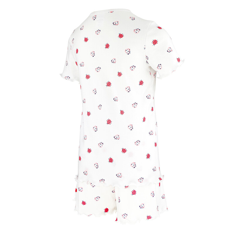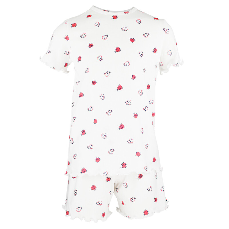 Dívčí pyžamo s krátkým rukávem s decentním potiskem na vrchním díle. Kraťasy s navlíkací gumou v pasové části.