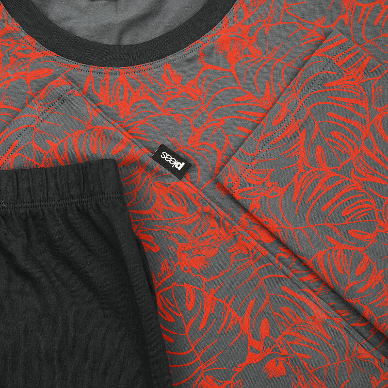 Klasické pánské dlouhé pyžamo s kulatým výstřihem. Dlouhé kalhoty bez nápletů se všitou gumou v pase.