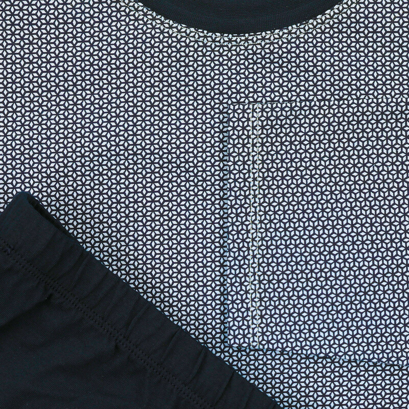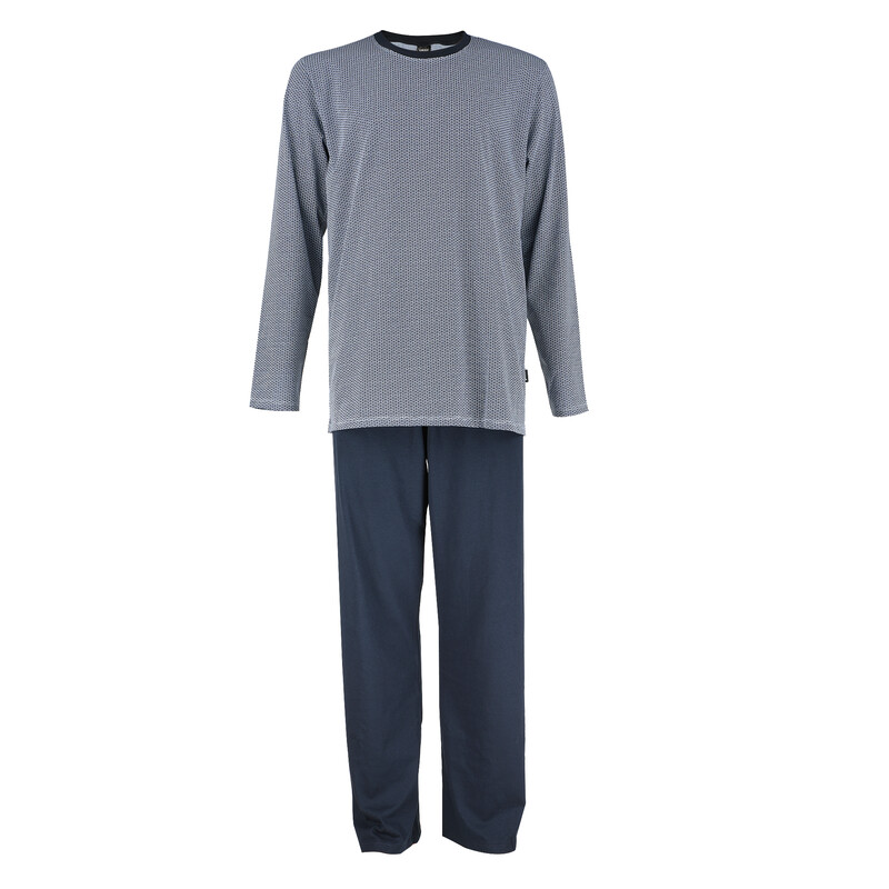 Klasické pánské dlouhé pyžamo s kulatým výstřihem. Dlouhé kalhoty bez nápletů se všitou gumou v pase.