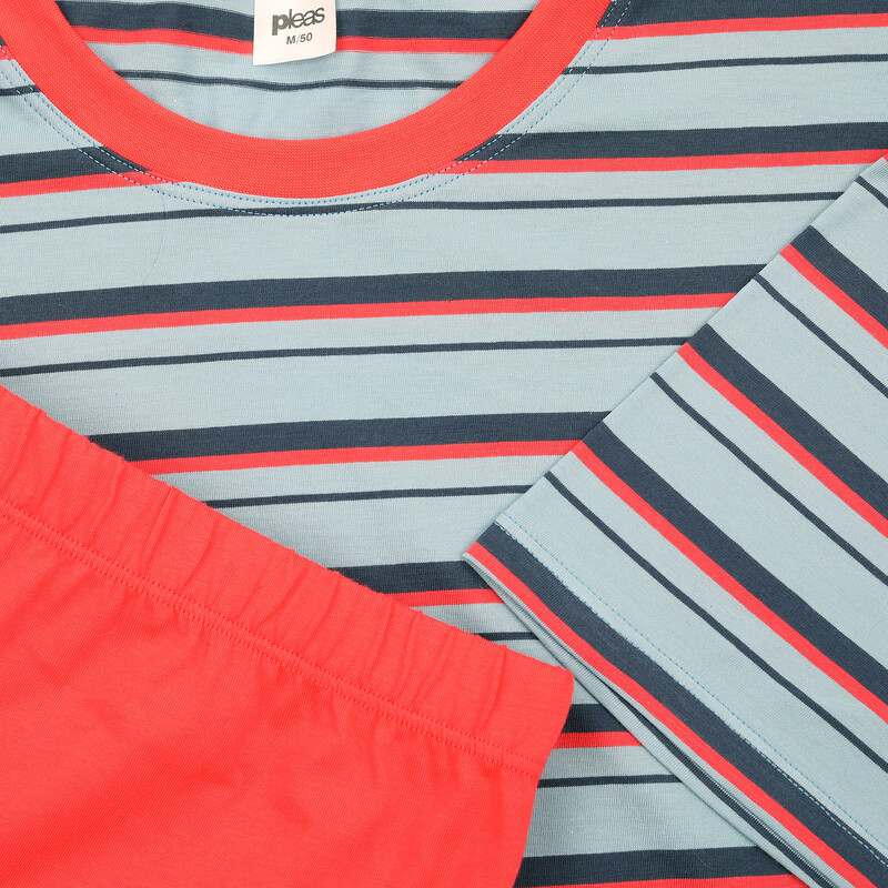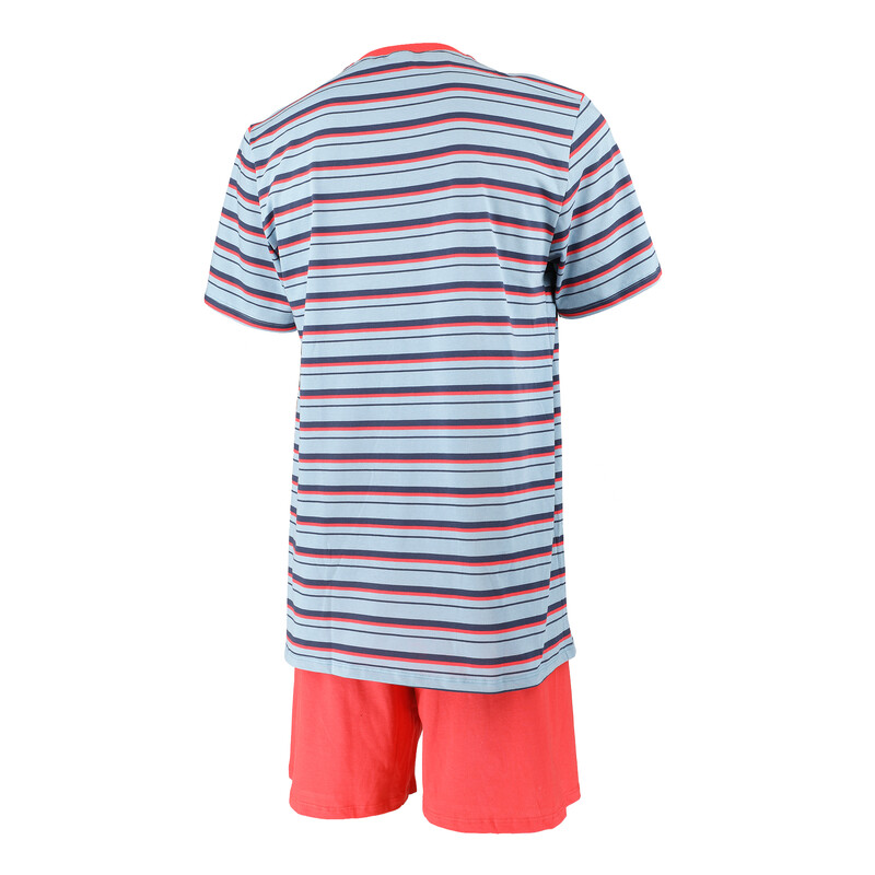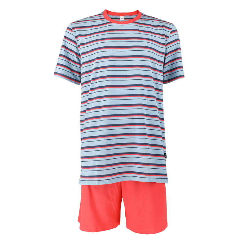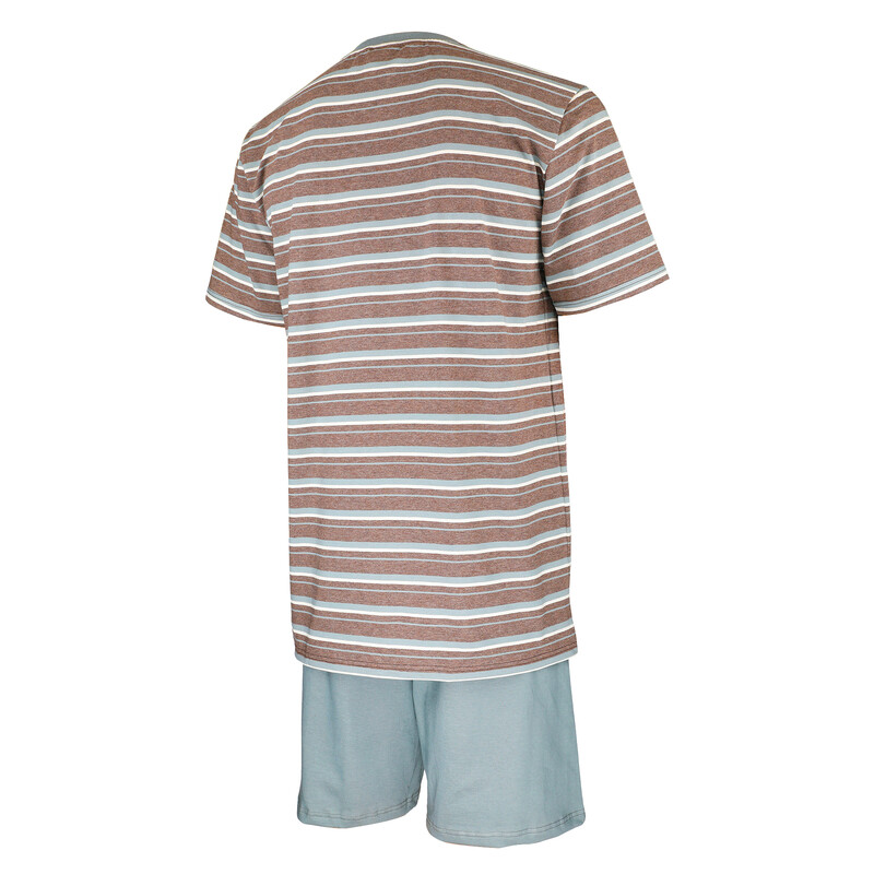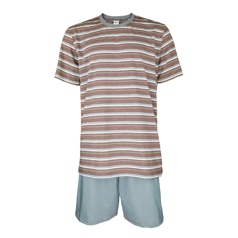 Slušivé moderní pánské pyžamo s krátkým rukávem a kulatým výstřihem. Krátké jednobarevné kalhoty v pase se všitou gumou.