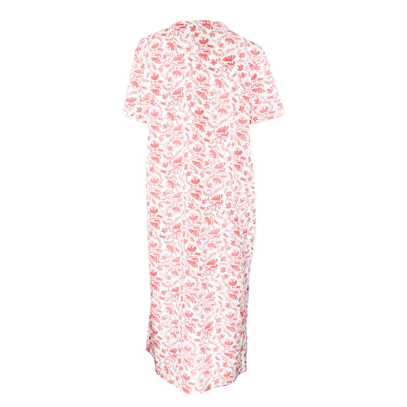 Klasická dámská noční košile střední délky s krátkým rukávem. Kulatý výstřih s propínací légou. Na prsou ozdobné řasení. Délka : od výstřihu / zadní díl pro vel.38/S = 110 cm ; u každé další velikosti cca + o 1 cm více než předchozí velikost