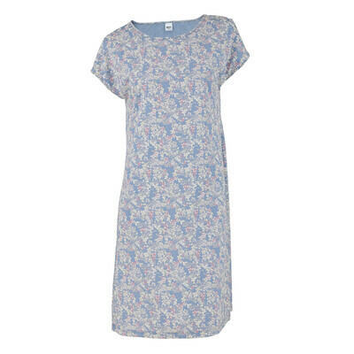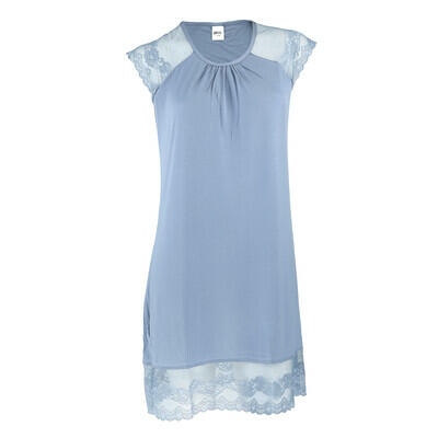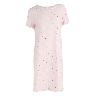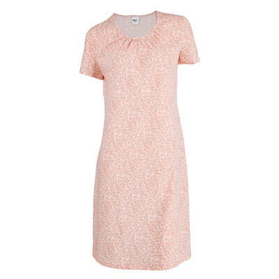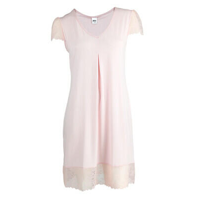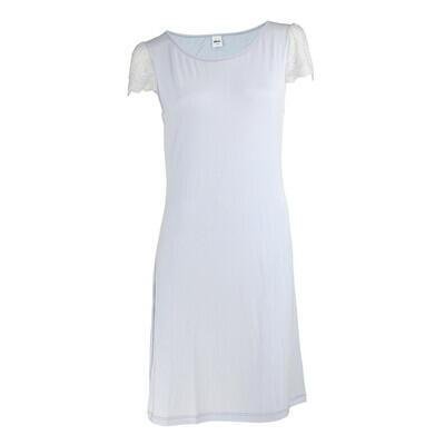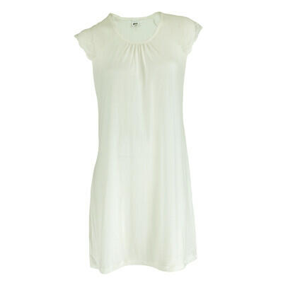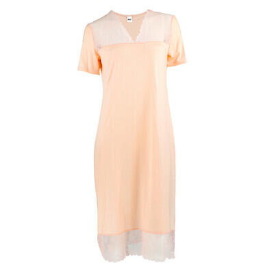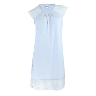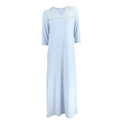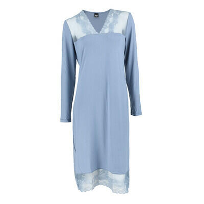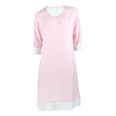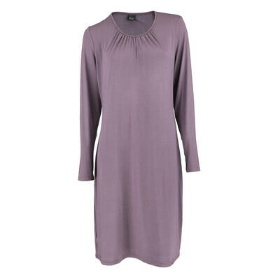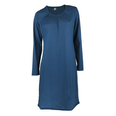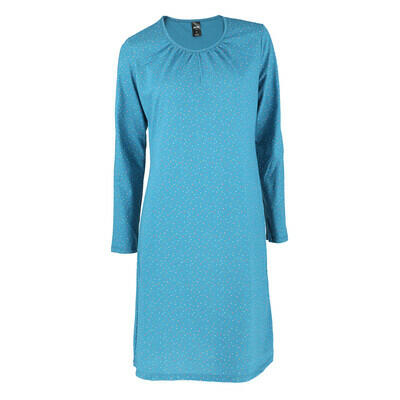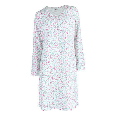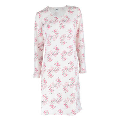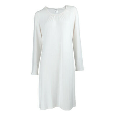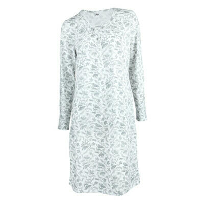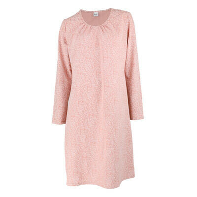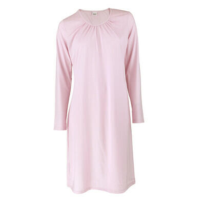 Klasická dámská noční košile s dlouhým rukávem. U kulatého výstřihu drobné řasení a ozdobná mašlička.