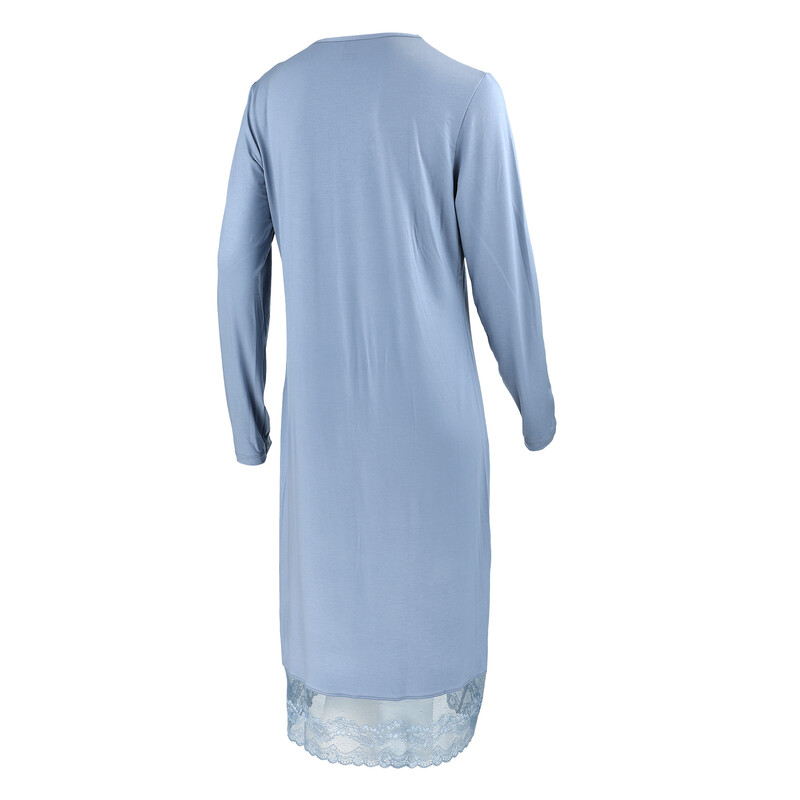 Elegantní dámská noční košile s dlouhým rukávem. Ve výstřihu a na spodním lemu je našitá luxusní krajka. Velmi jemný pohodlný materiál.